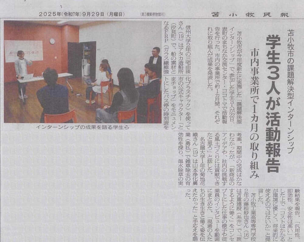 令和7年度 苫小牧市事業 課題解決型インターシップ事業