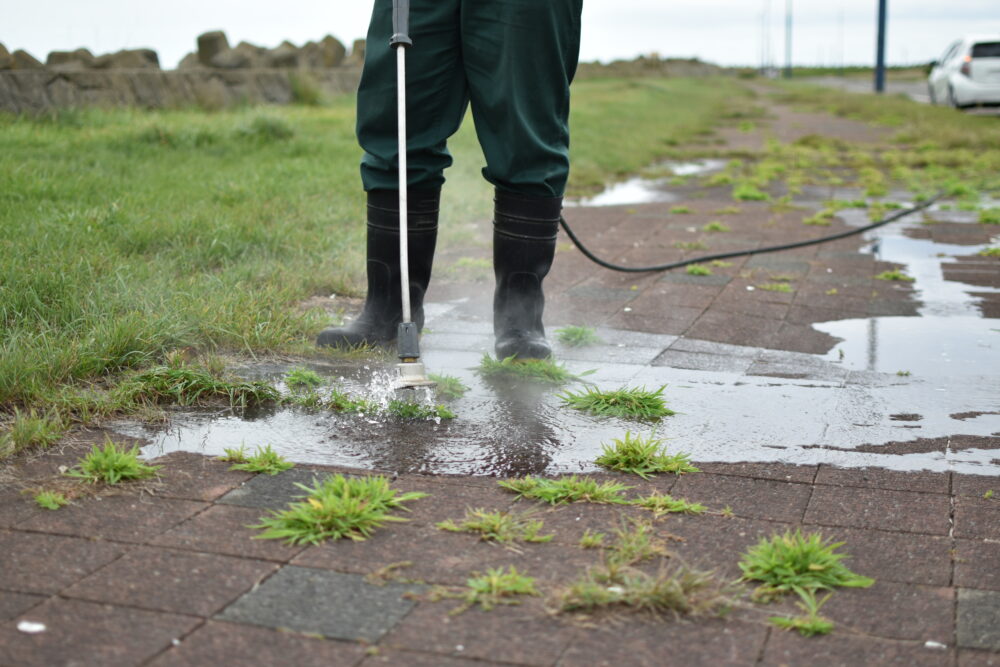 これらを解決するべく、新たな清掃方法の調査を模索しており前回自社で行った温水除草を再度検証していただく事としました。